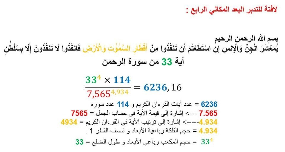 أمثلة حول البعد الرابع و معطيات القرءان العامة (جزء 8)