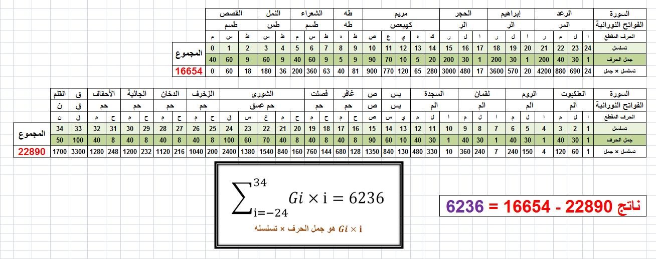 نلاحظ أن : مجموع (جمل الحرف × ترقيمه) = 6236