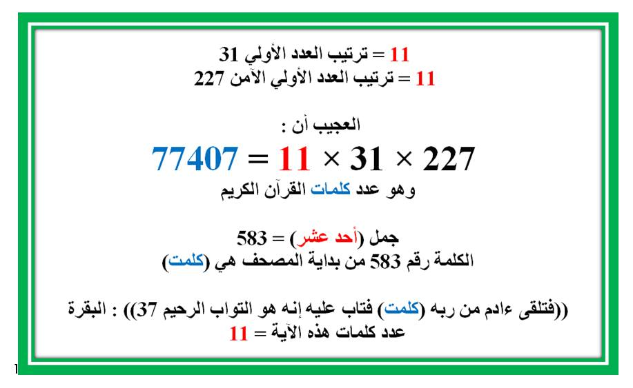 11 × 31 × 227 = 77407 = عدد كلمات القرآن الكريم