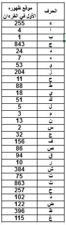 [1] الفجوة الكبرى لحرف ل هي بين لام رقم 22942 والتالي له 22943 وهما يصادفا الحرفين رقم 193946 و الحرف رقم 194038 وبذلك يكون حجم الفجوة = 92وكل منهما يقع في الآية (نور:61)
