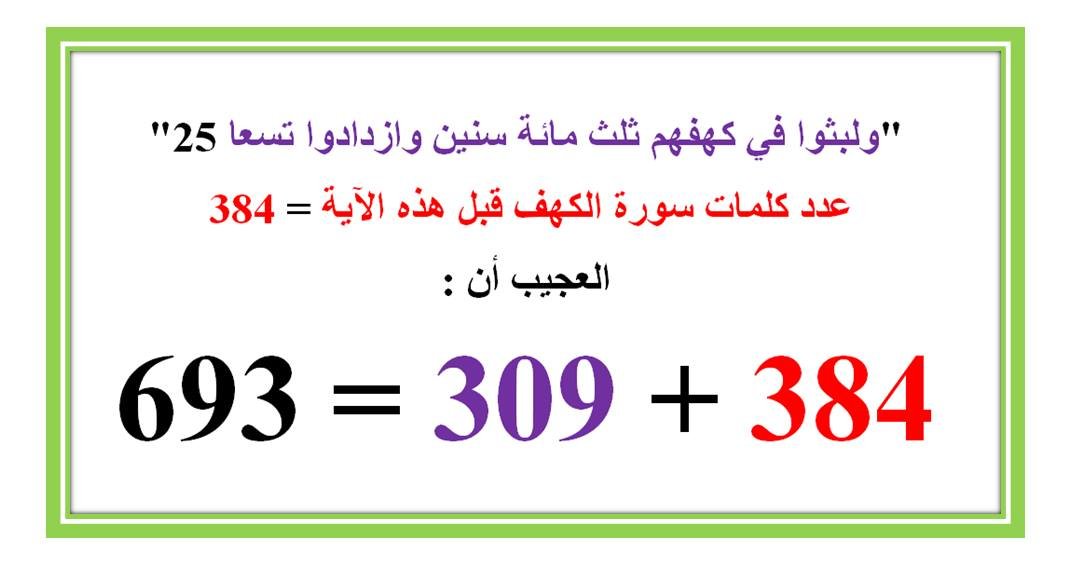 في 9 آيات مجموع أرقامها = 504 ، وعدد كلماتها = 114 ، وعدد حروفها = 444
