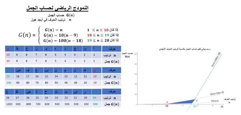حساب الجمل تحكمه ثلاث معالات خطية متصلة في موقعين :