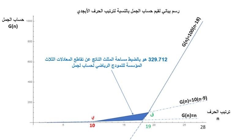 العدد 329.712 هو بالضبط مساحة المثلث الناتج عن تقاطع المعادلات الثلاث المؤسسة للنمودج الرياضي لحساب لجمل .