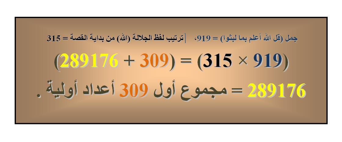 فهل هناك علاقة عددية تربط هذه العبارة بالعدد 309 ؟ لنرى ..!!